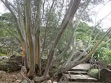 The authors considered that this species is similar to both E. stellulata and E. moorei but that it could not be a hybrid of these species because of its geographical isolation from them.[3] Others authorities consider it to be a subspecies, Eucalyptus moorei subsp. moorei.[6]