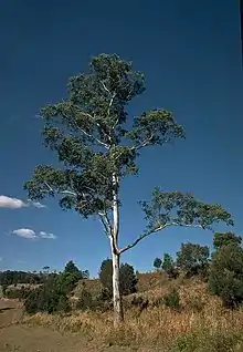 Eucalyptus dorrigoensis, commonly known as the Dorrigo white gum,[2] is a species of tree that is endemic to New South Wales. It has smooth white, grey or pink bark, lance-shaped to curved adult leaves, flower buds in groups of seven, white flowers and cup-shaped, conical or hemispherical fruit.