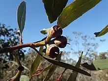 - Nicolle, Dean; French, Malcolm E. (2012). "A revision of Eucalyptus ser. Falcatae (Myrtaceae) from south-western Australia, including the description of new taxa and commonts on the probable hybrid origin of E. balanites"", E. balanoplex and E. phylacis" (PDF). Nuytsia. 22 (6): 437–441. Retrieved 8 August 2019.