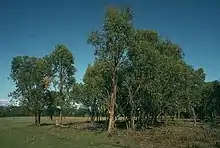The Gippsland mallee is endemic to Victoria and is found near watercourse inland and on coastal plains, often growing in small, pure stands. It mainly occurs between Yarram and Cape Otway, near Portland and on Wilsons Promontory.[2][3]