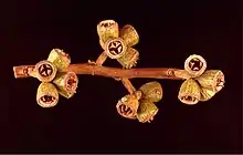 The tree belongs in subgenus Symphyomyrtus section Dumaria to a large sub-group, the series Rufispermae, composed of 37 described species and subspecies including E. striaticalyx, E. gypsophila and E. repullulans.[7]
