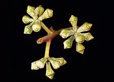 Eucalyptus malacoxylon, commonly known as Moonbi apple box[2] or apple box,[3] is a species of small to medium-sized tree that is endemic to a restricted area of New South Wales. It has rough, fibrous or flaky bark on the trunk and larger branches, smooth bark on the thinnest branches, lance-shaped adult leaves, flower buds in groups of seven, white flowers and cup-shaped, conical or hemispherical fruit.