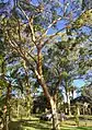 The grey gum regenerates by regrowing from the base and branches after bushfire. Trees live for over a hundred years. The grey-headed flying fox (Pteropus poliocephalus) eats the flowers, while the leaves form a staple of the diet of the koala (Phascolarctos cinereus).[9] Leaves in winter contain less nitrogen than those in summer, which the koalas make up for by eating more in winter months.[10] The brown-headed honeyeater (Melithreptus brevirostris) and yellow-tufted honeyeater (Lichenostomus melanops) have been observed eating gum exudate from the stems.[11] Fieldwork at several sites around central New South Wales showed that the red wattlebird (Anthochaera carunculata) and noisy friarbird (Philemon corniculatus) preferred to forage on the foliage of the grey gum over other trees, with the former appearing to oust the latter if both species were present.[12]