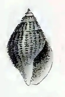 Its most obvious character is its short subrhomboid contour, short body, and its cancellated surface.[2]