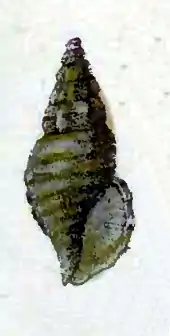 The uppermost whorls are strongly variced, the lower ones usually plain.[3]