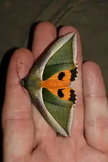 Eudocima salaminia, the green fruit-piercing moth, is a moth of the family Erebidae. The species was first described by Pieter Cramer in 1777. It is found from India, and across south-east Asia to the Pacific Islands. In Australia it occurs in the Northern Territory, Queensland and New South Wales. The adult is a fruit piercer.[1][2]