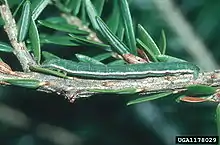 The larvae feed on balsam fir, eastern hemlock, eastern larch and spruces.