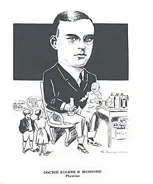Mumford was born in 1879 in New Harmony, Indiana to a family of prominent Owenites. Mumford graduated from the University of Wisconsin in 1901 and Johns Hopkins in 1905. He obtained postgraduate training at Boston Children’s Hospital and Gouverneur’s Hospital in New York. He returned to Indiana in 1915 to establish a children’s orthopedics practice and married Elsa Frenzel in 1917. His practice was interrupted by WWI, where he served as a captain at the "Eli Lilly" Base Hospital No. 32 in Contrexeville, France.[3] He returned to Indianapolis after the war and opened the Indianapolis Industrial Clinic with Dr. Jay Reed in 1920.[2] He later was appointed to the faculty at the Medical College of Indiana and was one of the first surgeons at the James Whitcomb Riley Hospital for Crippled Children. He continued these appointments until his 1961 death in Indianapolis.