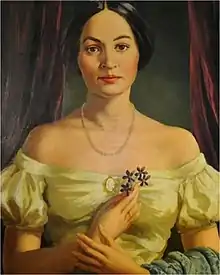 Fitzgerald became one of the founders of the first woman's secret society established in a girls' college on May 15, 1851.[2][3][4][5] The sorority, founded at Wesleyan Female College in Macon, had six charter members.[6][7][8] The seven founders were: Eugenia Tucker (Fitzgerald), Octavia Andrew (Rush), Maria J. Easterling, Mary Evans (Glass), Oceana L. Goodall, Ella Pierce (Turner), and Elizabeth Williams Mitchell[9] It was originally called the Adelphean Society[10] and in 1903 changed its name to Alpha Delta Pi sorority.[11][12][13] Fitzgerald was its first president and held their meetings in the college's Adelphean Room. It was founded for mutual improvement and enjoyment of a group of young women pioneers in college sororities.[14][15] Its purpose was a desire "to better one another morally, mentally, and socially."[16] Their motto is We live for each other.[10]