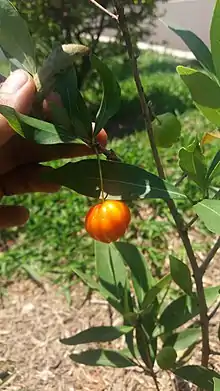 Eugenia pitanga, commonly known as pitanga do cerrado or savanna pitanga, is a species of plant in the family Myrtaceae.[1][2] It is found in the savannahs and grasslands of Argentina, Paraguay, and Brazil. It is a deciduous shrub that grows up to 2 metres tall, has rhizomatous rootstock allowing it to form dense thickets, and produces red, edible fruit, 15-25mm in diameter.[3]