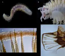 There are about 168 genera in the family Polynoidae but many have not been validated by recent studies using DNA sequence data.[5][6] The genus Eunoe contains 49 accepted species, which occur throughout the global oceans.[7] Morphological features can distinguish Eunoe leiotentaculata from the other members of the genus but there is no review of all species and few have DNA sequence data. Sampling of the oceans is very sparse, especially at the depths where Eunoe species typically occur.[8]