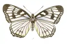 One or more of the preceding sentences incorporates text from this source, which is in the public domain: Moore, Frederic (1896–1899). Lepidoptera Indica. Vol. III. London: Lovell Reeve and Co. pp. 44–47.