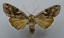 Eurois occulta, the great brocade or great gray dart, is a moth of the family Noctuidae. It is found in northern and central Europe, North Asia and central Asia to the Pacific Ocean and Japan. Also the northern parts of North America (coast to coast in Canada, south in east to Virginia and the Great Lakes states) ( a Holarctic distribution). In addition, it is found in Greenland and Iceland. In the south in northern Spain and on the Balkan peninsula.