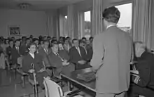 Following the EUD Congress in Eutin another congress took place in Hamburg in May 1949. The publicist Eugen Kogon was elected first president during the Hamburg congress. Carlo Schmid was in absence elected vice-president and henceforth was an important advisor for Europa-Union Deutschland.[5] Under the leadership of Kogon EUD represented the ideological interests and opinions of German left-wing Catholicism and French integral federalism in the late 1940s and early 1950s. The unification of Europe should be achieved bypassing parliaments. In the following years, criticism arose concerning Kogon's leadership style and the political orientation of Europa-Union. In addition, his financial mismanagement, which brought the association to the brink of ruin in the early 1950s, provided the grounds for his dismissal.