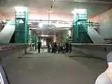 Southern end of platforms showing lifts and stairways to ticket hall, June 2015.