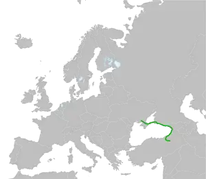 European route E 97 is an A-class European Route in Ukraine, Russia, Georgia, and Turkey. The highway runs for 1,360 kilometres (850 mi) in total.[1] It connects the North Black Sea region with the South Black Sea region along the eastern shores of the sea.