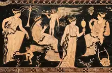 In the epic tradition, Eurynome was one of the elder Oceanides, that is, a daughter of Oceanus and Tethys.[1] Eurynome was the third bride of Zeus and mother of the Charites, goddesses of grace and beauty.[2]