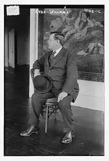 Evan Williams was born on 7 September 1867 in Mineral Ridge, Ohio, the son of David Williams and Gwendolyn Harris.[1] His parents were recent poor Welsh immigrants from Pembrokeshire, Wales. They were married in 1867 in Trumbull County, Ohio. When Evan was 13 years old, his Mother died in childbirth, and he was sent to live with his aunt and uncle, Thomas and Sarah Davis in Thomastown, a Welsh immigrant mining community near Akron, Ohio.