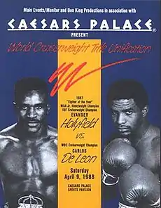 Evander Holyfield vs. Carlos De León was a professional boxing match contested for the undisputed cruiserweight championship between WBA, and IBF champion Evander Holyfield and WBC champion Carlos De León. The bout took place on April 9, 1988 at Caesars Palace in Paradise, Nevada.