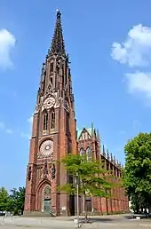 The seat of the church is in Bremen. It is a full member of the Evangelical Church in Germany (EKD), and is a United church combining both Lutheran and Reformed traditions. Brigitte Boehme became the church's first female president in 2001. The church had 176,786 members as of December 2020[1] in 68 parishes. Laic presidency is one of the special characteristics of the Evangelical Church of Bremen. It has no theological headmaster. The parishes have a high degree of autonomy, and there is a great variety between liberal and conservative ones. Each member of the church has the free choice, which parish he wants to join. Bremen Cathedral is the most prominent place of worship, but it has no higher status than any other parish. The Evangelical Church of Bremen is a member of the UEK and of the Community of Protestant Churches in Europe. In Bremen the church has its own evangelical academy. The church has allowed the ordination of women and the blessing of same-sex unions.[2]