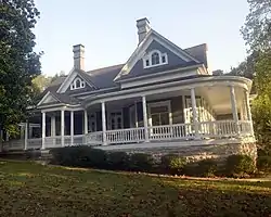 The Evans-Kirby House is a historic house at 611 South Pine Street in Harrison, Arkansas. It is a two-story wood-frame structure on a sandstone foundation, with a busy roofline and asymmetrical massing typical of the Queen Anne style. The roof is punctuated with five dormers of different sizes and shapes, and the walls are finished with clapboards and decoratively-cut shingles. The porch is adorned with spindled friezes and brackets. The property also includes a period barn/carriage house and garage, the latter over an original smoke cellar. The house was built in 1895 for Dr. E.L. Evans, who sold it in 1906 to his brother-in-law, Dr. Frank Kirby.[2]