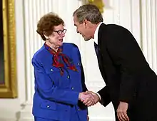 Witkin was elected as a member of the National Academy of Sciences in 1977, at the time she was one of the few women elected to the Academy; a Fellow of the American Academy of Arts and Sciences (1978),[6] a Fellow of the American Association for the Advancement of Science (1980); and a Fellow of the American Academy of Microbiology. She was awarded the 2000 Thomas Hunt Morgan Medal and her contributions to science have been recognized by the United States government as she was awarded the National Medal of Science in 2002;[7]