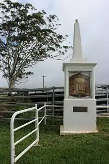 The Memorial stands on private property on the Jonsson Road, off the Tumoulin to Ravenshoe Road in the southern Atherton Tablelands.[1]