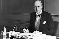 Sir John Evelyn Leslie Wrench KCMG (29 October 1882 – 11 November 1966) was a British author and journalist who was editor of The Spectator. He was the founder of the Royal Over-Seas League and the English-Speaking Union, both to foster international communication and education.[1] His initial gamble in the post card business, due to the popularity of post cards, proved a great success. By the turn of the century, half of all the post cards sold in Paris came from his stores. He later became a prominent author on matters relating to the British Empire.