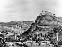 Everhard and his brother Johannes "Johannes, Everhardus nostra filli", was mentioned on March 12, 1271 at the foundation of a Vicario in remembrance of his brother's wife in the chapel of the monastery in Elsey.[2] He was 19 years old at the time and not yet married. A year later he and his mother "Aleydis comitissa in Lymburg, Everhardus fikius noster" [3] witnessed a donation of an estate to the same nunnery of Elsey on River Lenne not far from the castle Hohenlimburg.