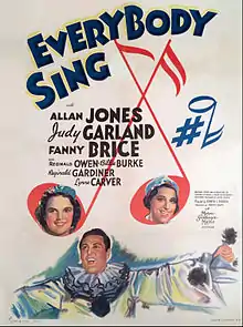 Everybody Sing is a 1938 American musical comedy film starring Allan Jones, Judy Garland, and Fanny Brice, and featuring Reginald Owen and Billie Burke. The film was a significant step in Garland's career.