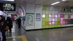 Ewha Womans University Station is a station on the Seoul Subway Line 2. As its name indicates, it serves the nearby Ewha Womans University, although Sinchon Station on the Gyeongui-Jungang Line is closer to the school.[2] Although technically the station has one island platform with both rail tracks running on opposite sides, the two boarding areas with screen doors are essentially blocked off from each other, and are connected only by a few long and narrow passageways. Some people mistake this station to have two side platforms that are adjacent to each other.
