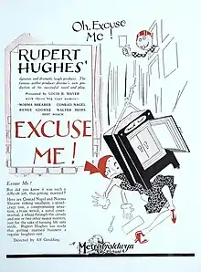 Excuse Me is a 1925 American silent comedy film starring Norma Shearer and Conrad Nagel. It was directed by Alfred J. Goulding, and based on the 1911 play of the same name written by best-selling novelist Rupert Hughes.[1][2] The comedy concerns naval officer Harry Mallory and his would-be bride Marjorie Newton who spend most of their time running up and down a train looking for a clergyman to marry them.