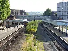 Exeter Central is served by hourly trains on the West of England line operated by South Western Railway from London Waterloo station to Exeter St David's.[5] Local services are provided by Great Western Railway on the Avocet Line from Exmouth to Exeter St David's (where they continue to Paignton), which run half-hourly, and on the Tarka Line from Exeter Central to Barnstaple, which run hourly.[6]