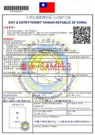 | Exit & Entry Permit for Taiwan, Republic of China 中華民國臺灣地區入出境許可證 | |