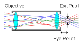 The optimum eye relief distance also varies with application. For example, a rifle scope needs a very long eye relief to prevent recoil from causing it to strike the observer.[1]