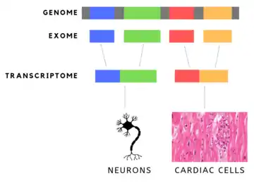 It is important to note that the exome is distinct from the transcriptome, which is all of the transcribed RNA within a cell type. While the exome is constant from cell-type to cell-type, the transcriptome changes based on the structure and function of the cells. As a result, the entirety of the exome is not translated into protein in every cell. Different cell types only transcribe portions of the exome, and only the coding regions of the exons are eventually translated into proteins.
