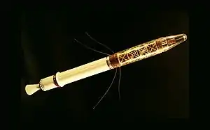 | Dimensions | Cylinder: 94.6 cm (37.2 in) long, 16.5 cm (6.5 in) in diameter, total length with attached rocket motor: 2.05 m (6 ft 9 in) |