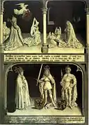 Four-lobed triptych displaying the Holy Trinity and the Evangelists | 2 | Melchior Broederlam / Unknown, Flemish or Franco-Flemish, end of the 14th century | Unknown | 1390 | Gemäldegalerie | [16] |
