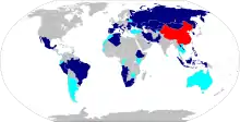 China maintains extradition treaties with 59 nations/jurisdictions while 39 of them are ratified.[3] According to the official website of the People's Procuratorate of Guangdong Province, by October 2018, the countries below have signed extradition treaties with People's Republic of China:[3]