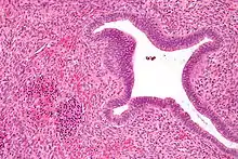 - Palatnik A, Narayan R, Walters M (November 2012). "Extramedullary hematopoiesis involving uterus, fallopian tubes, and ovaries, mimicking bilateral tuboovarian abscesses". International Journal of Gynecological Pathology. 31 (6): 584–7. doi:10.1097/PGP.0b013e31825183ad. PMID 23018220.