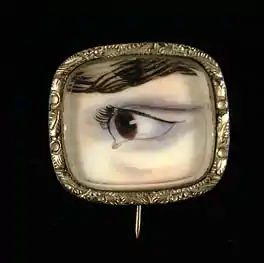 Eye miniatures or Lovers' eyes were Georgian miniatures, normally watercolour on ivory, depicting the eye or eyes of a spouse, loved one or child. These were usually commissioned for sentimental reasons and were often worn as bracelets, brooches, pendants or rings with richly decorated frames, serving the same emotional need as lockets hiding portraits or locks of hair. This fad started in the late 1700s and miniaturists such as Richard Cosway and George Engleheart were responsible for some of the first pieces.[1]