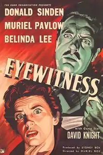 Eyewitness is a 1956 British thriller film directed by Muriel Box and starring Donald Sinden, Muriel Pavlow, Belinda Lee, Michael Craig, Nigel Stock and Richard Wattis. It was made by the Rank Organisation.[1][2][3]