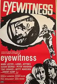 Eyewitness (released as Sudden Terror in the United States) is a 1970 British thriller film directed by John Hough, and starring Mark Lester, Susan George, and Lionel Jeffries.[2] Its plot follows a young English boy who, while staying with his grandfather and adult sister in Malta, witnesses a political assassination, and is subsequently pursued by the killers—however, due to his habitual lying, those around him are hesitant to believe his claims. It is an adaptation of the novel by Mark Hebden, the pen name for John Harris, and bears similarity to Cornell Woolrich's novelette "The Boy Cried Murder", originally adapted for film as The Window.[3][4]