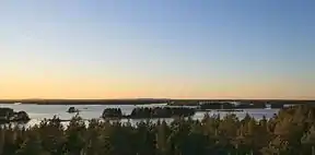 Färnebofjärden National Park (Swedish: Färnebofjärdens nationalpark) is a Swedish national park traversed by the river Dalälven, about 140 km (87 mi) north of Stockholm. It covers 10,100 ha (25,000 acres), of which 4,110 ha (10,200 acres) aquatic, on the frontier between the counties of Dalarna and Gävleborg.