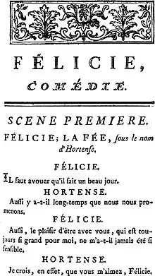 Félicie is a play by the French playwright Pierre de Marivaux. It was published for the first time in the Mercure de France in March 1757.