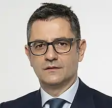 Félix Bolaños García (Madrid, 17 December 1975) is a Spanish lawyer and politician who serves as minister of the Presidency, Relations with the Cortes and Democratic Memory of Spain since 2021. Previously, he served as Secretary-General of the Office of the Prime Minister of Spain from 2018 to 2021.