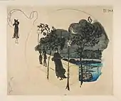 In 1888, Auguste Lepère created with Félix Bracquemond, Daniel Vierge and Tony Beltrand, the magazine L'Estampe originale, in order to interest artists and amateurs in the new processes and trends of engraving, particularly in color, and Henri Rivière worked from this date on "The Thirty Six Views of the Eiffel Tower", from 1888 to 1902.[4] In 1891, Valloton renewed the art of engraving on wood,[5] with Gauguin or Émile Bernard while Toulouse Lautrec revolutionized the art of the poster.