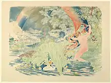 He is also the author of a book entitled Du dessin et la couleur, published in 1886, very much appreciated by Vincent van Gogh,[14] and a study on woodcutting and lithography. His best engravings are devoted either to landscapes or to animals: Reeds and teals (1882), Les Hirondelles (1882), Les Mouettes (1888).