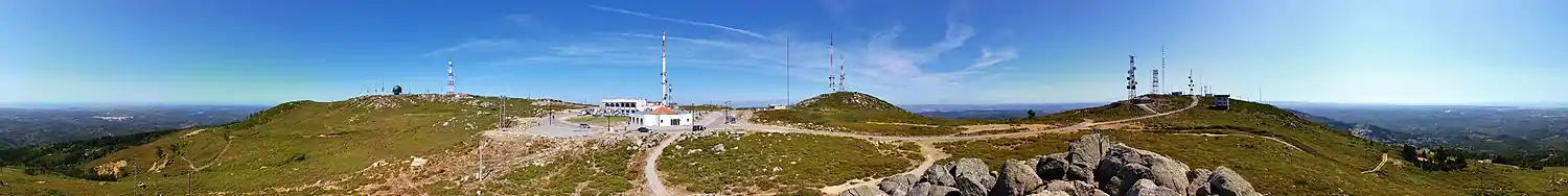 There is a paved road right to the summit which is topped by several telecommunication facilities including the Radar Station Number 1 of the Portuguese Air Force. On a clear day the Atlantic Ocean is visible.