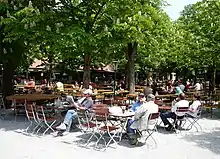 The Beach arena, the Max Planck Institute for Physics, the tennis club MTTC Iphitos, as well as the beer garden Aumeister are located on the Föhringer Ring. To the south is the Studentenstadt and the northern part of the Englischer Garten. To the north is a work site of the Bayerischer Rundfunk, to the north-east is the cogeneration plant north.